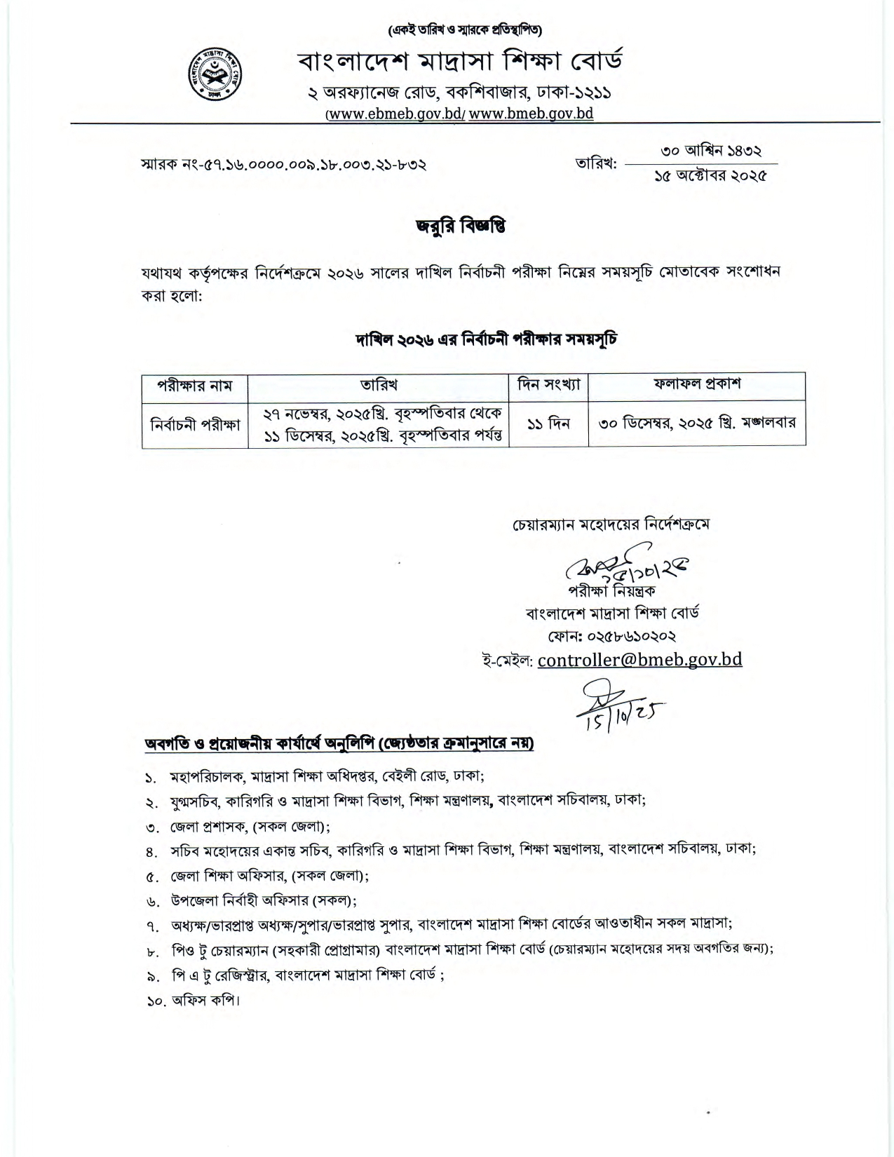এতদ্বারা ২০২৫ সালের দাখিল পরীক্ষায় অকৃতকার্য শিক্ষার্থীদেরকে অবগতির জন্য জানানো যাচ্ছে যে, আগামি ০৬, ০৭, |
